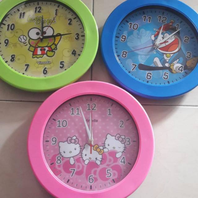 Jam dinding karakter Ready motif Hello kity Keropi Doraemon 1 kilo bsa muat 2