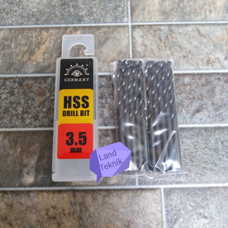Mata bor besi hss 3,5mmwarna hitam germanyharga yg tertera untuk /pcs atau 1pcs.. Untuk pengambilan 1 box nya isi 10