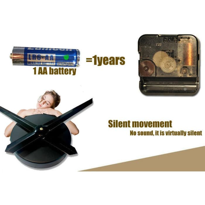 Jam Dinding Besar Exclusive (PROMO)Tersedia warna:- BLACK- SILVER- GOLDModel: Huruf dan AngkaMaterialEVA, Alloy, AcrylicBattery TypeAA (1.5V) battery (Not include)DimensionDiameter: 80 - 130 cmJam dinding dengan ukuran sangat besar. Angka jam dan jarum jam dipasang secara manual. Jam ini memiliki diameter yang sangat besar yaitu antar 80 - 130 cm. Cocok diletak pada ruang tamu dan berfungsi sebagai penghias ruangan.FeaturesSilent Sweeping MovementMeskipun memiliki bentuk yang sangat besar namun jam ini tidak menghasilkan suara sama sekali. Tidak perlu cemas malam Anda menjadi ribut karena gerakan jam.Water & Steam ResistantMemiliki lapisan khusus untuk melindungi jam dari air dan uap. Jam ini akan awet dan tahan lama tanpa perlu perawatan rutin.AA BatteryGiant wall clock ditenagai hanya dengan 1 baterai AA.Costumize Your ClockAngka pada jam dapat ditempel sesuai keinginan