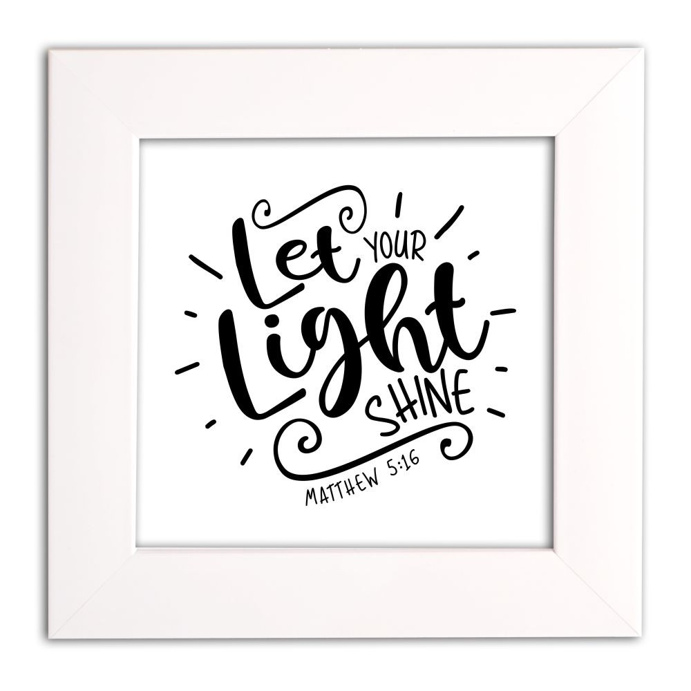 Hiasan Dinding Kristen, Pigura ayat alkitab, Bible wall decor, Poster KristenLet Your Light Shine Matthew 5:16Ukuran frame 20x20cmPrint high resolution, artcarton laminasi doffSudah ada cantelan#poster #hiasan #walldecor #kristen #katolik #ayat #alkitab #hiasandinding #pigura #mini