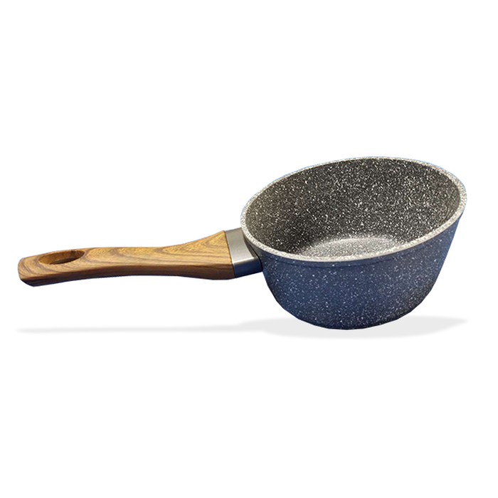 Sauce Pan dilapisi marble yang aman bagi kesehatan. Tidak mengandung bahan PFDA yang dapat menyebabkan kanker bila mengelupas (PFDA dipakai pada lapisan anti lengket pada umumnya). Tidak lengket, walaupun tanpa minyak sekalipun. Tidak tergores walau pakai irus besi sekalipun. Lapisan marble 3 lapis, tidak lengket dan tidak mudah terkelupas. Gagang seperti kayu alami, soft touch handle, dilapisi anti licin. Induksi bottom.Ketebalan 3mmDiameter 16cmTinggi 7.5cmPanjang