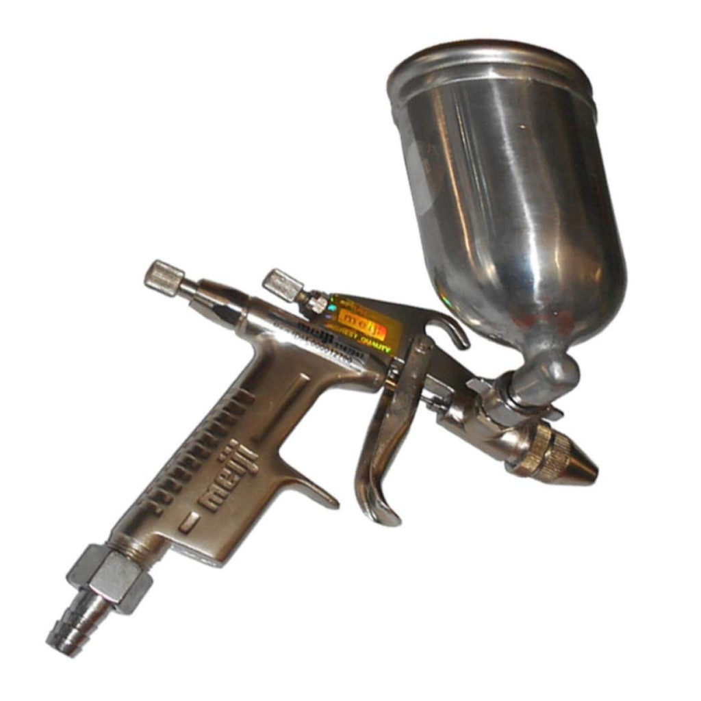 Detail produk dari Meiji Spray Gun / Spet R2 Tabung Atas - SilverKualitas TerjaminSpray Gun R2. Nozzle : 0.8mm Fokus TitikTabung atas 200mlMeiji Spray Gun R2 Tabung Atas - SilverMeiji Spray Gun R2 Tabung Atas - Silvermerupakan alat yang digunakan untuk mengatomisasi cat pada suatu permukaan yang menggunakan udara bertekanan. Prinsip dari spray gun adalah sama seperti halnya pada atomisasi. Apabila udara bertekanan dikeluarkan dari lubang udara terhadap air cap, maka suatu tekanan negatif akan timbul pada ujung fluida, yang setelah itu menghisap cat pada cup. Lalu cat yang dihisap ini disemprotkan sebagai cat yang diatomisasi (dikabutkan), oleh karena tekanan udara pada lubang didalam air cap.Spesifikasi :Tipe Feed GravityBentuk Nozzle TitikNozzle dia 0.8mmKapasitas Tangki 200ccWorking Pressure 3.0 - 4.0 barLebar Pola 100-150 mmKonsumsi Udara 3.2-5.6 cfmTekanan High PressureMade i